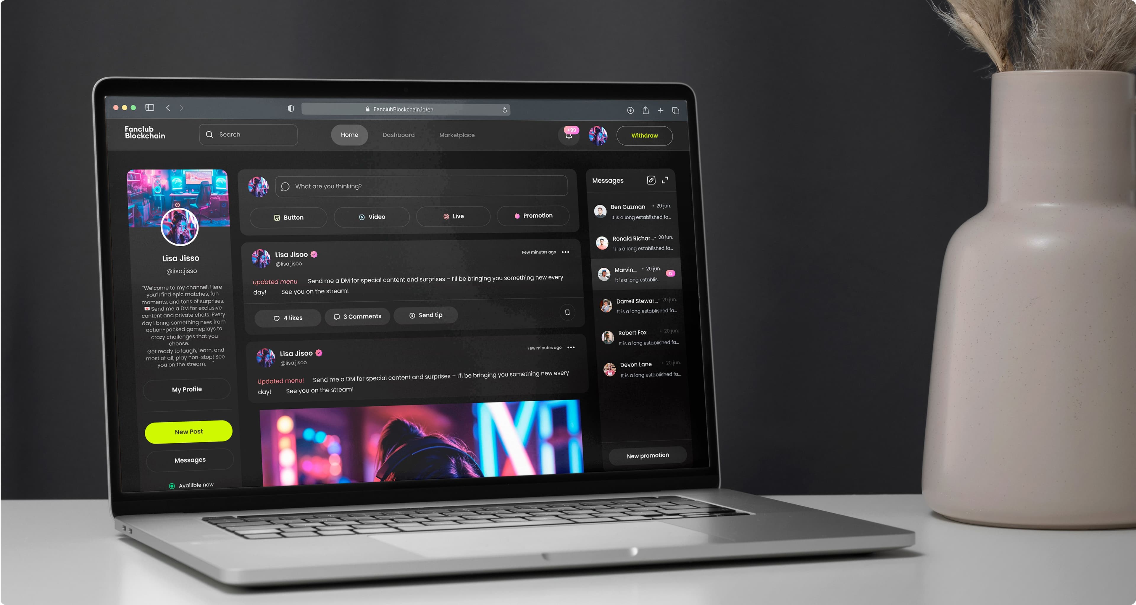 A revolutionary FanClub Blockchain platform was created, focused on security, authenticity, and protection against piracy of exclusive content. Thanks to the product design strategy, priority was given to delivering an innovative and exclusive experience for creators and fans, providing a direct and secure connection. This approach positioned the platform as a benchmark in the market.