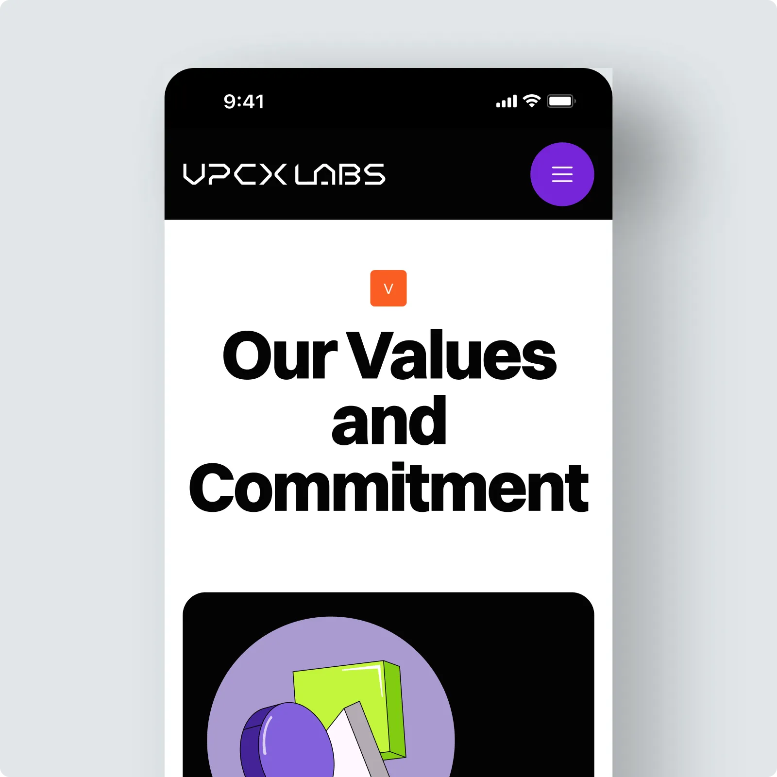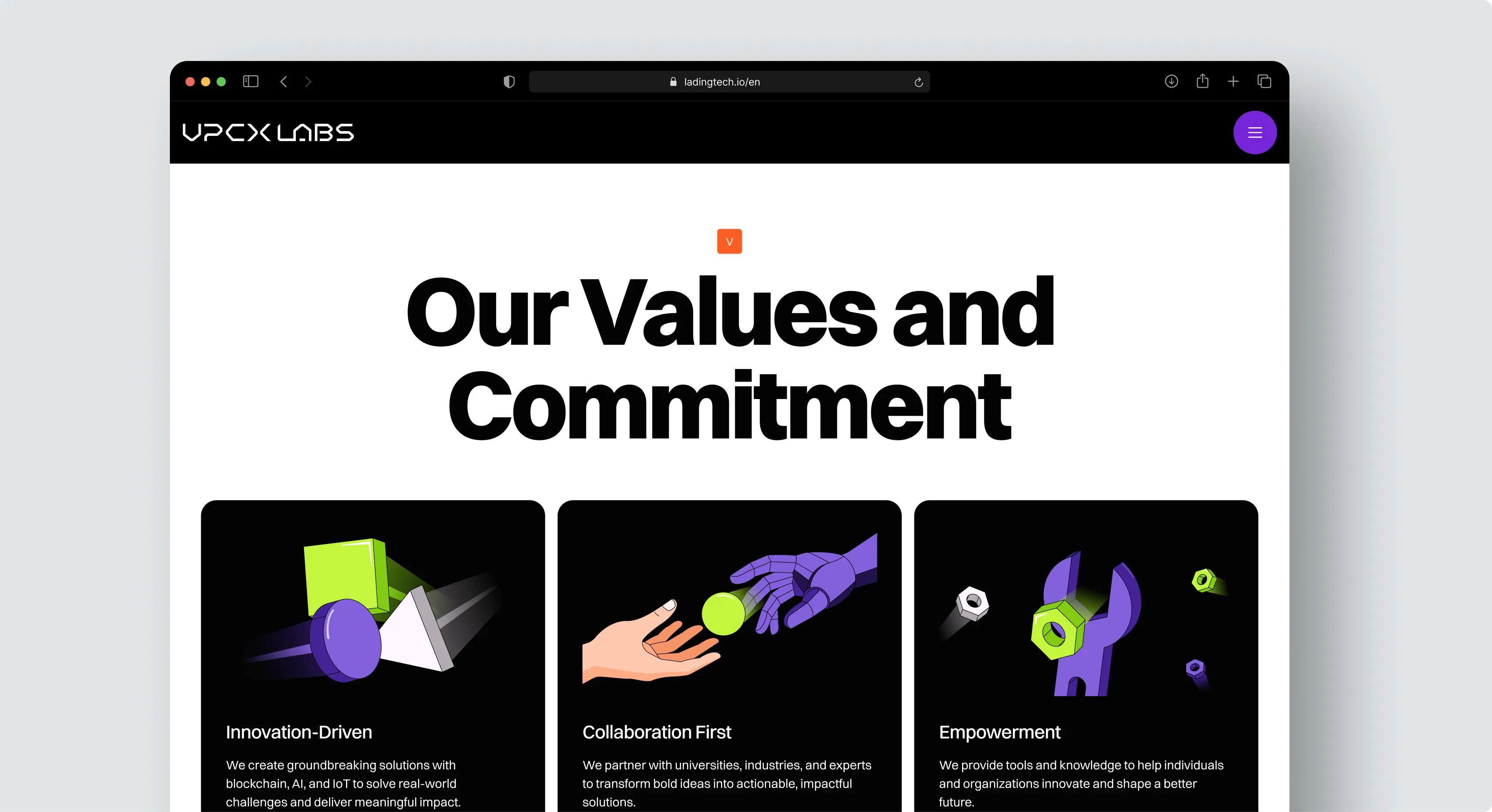 2. Branding: UPCX Labs’ branding reflects technology, innovation, and a forward-looking vision, featuring a deep purple that symbolizes creativity and digital transformation. Black and white tones add solidity, while orange accents bring energy. This palette balances technological advancement with a human-centered approach, projecting an image open to collaboration and global impact.