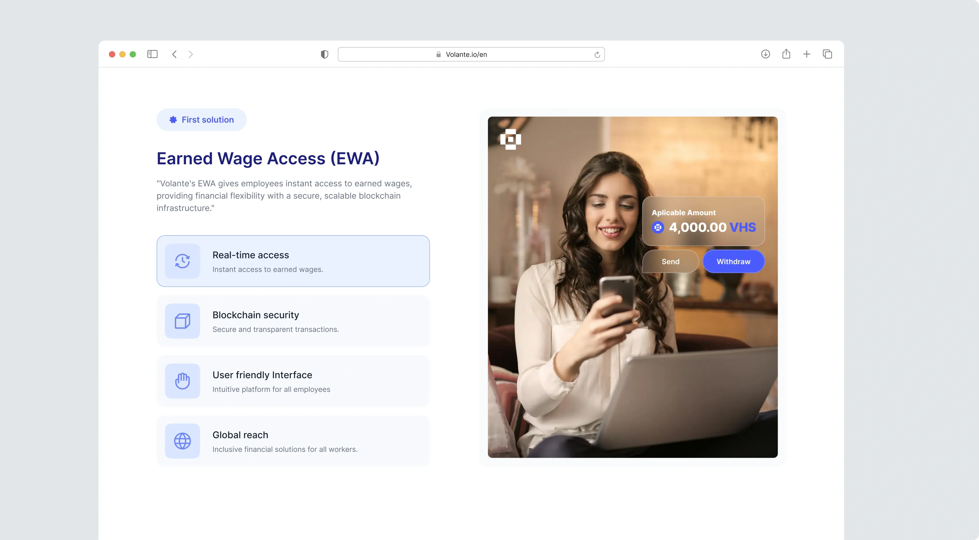 Volante is a platform that integrates blockchain and artificial intelligence, offering early access to salaries and financial solutions for vulnerable communities. At MeetLabs, we developed the business strategy and conducted detailed market research. We created the website, whitepaper, and sales deck, which enabled the attraction of investors and the establishment of strategic partnerships for large-scale launch